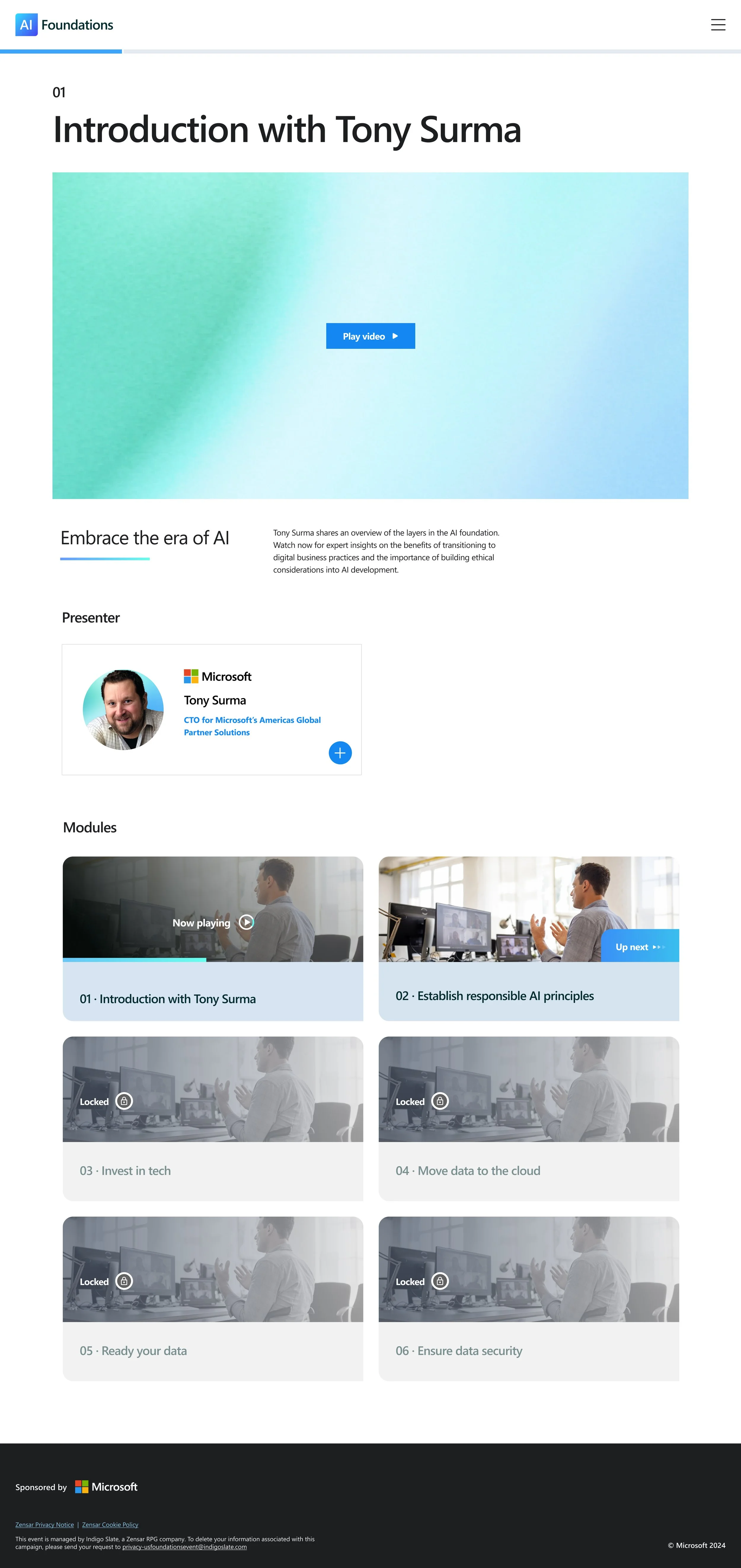 We produced an online, pre-recorded series designed to educate customers on the foundational requirements and key considerations before implementing AI solutions. The event featured high-quality content and professional staging, aimed at attracting potential customers and creating new sales opportunities for both ISV partners and Microsoft.